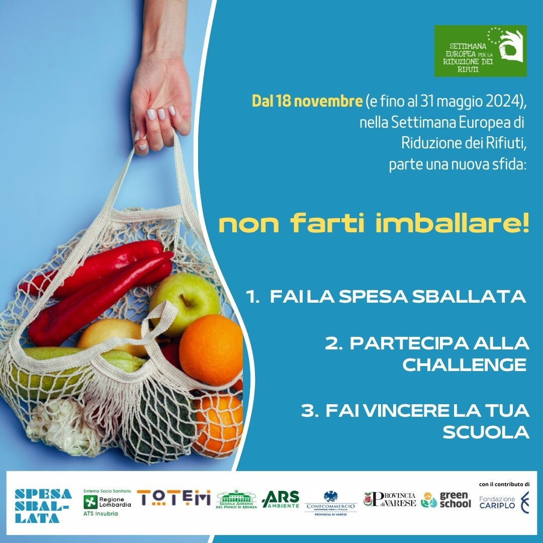 📌🌱🌏🏫 Il Programma Green School ci presenta la  Challenge "NON FARTI IMBALLARE!", iniziativa finalizzata alla riduzione degli imballaggi rivolta a tutte le scuole di ogni ordine e grado della provincia di Varese aperta da novembre al 31.05.24.