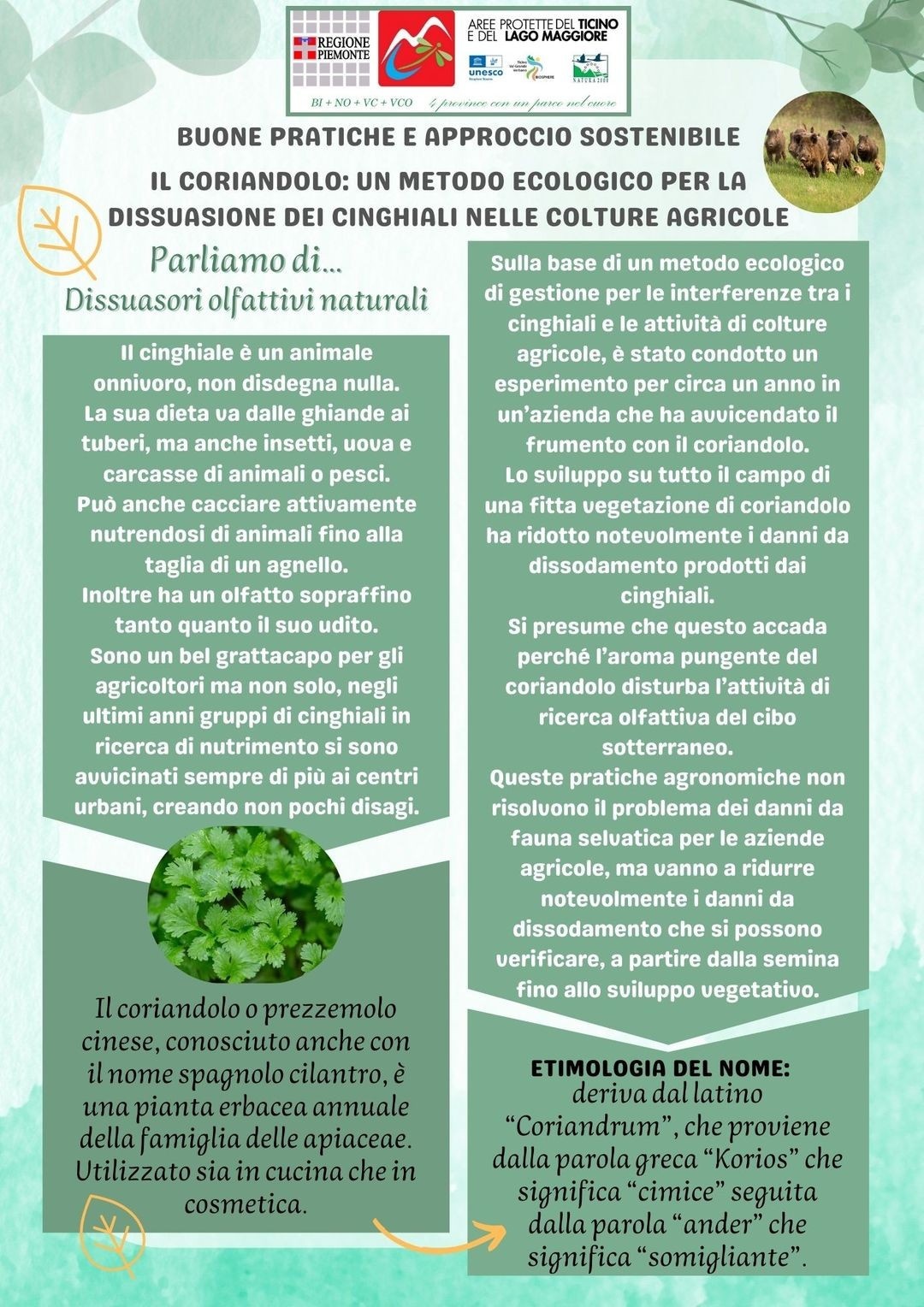 📌🧑‍🌾🌿🌳 Il Parco Ticino Lago Maggiore ci mette a disposizione una serie di utili consigli su come prendersi cura del verde in maniera rispettosa dell'ambiente grazie al progetto di tirocinio "Giardinieri d'arte per giardini e parchi storici" di Vanessa Doati. Questa settimana ci parla dei dissuasori olfattivi naturali per le colture agricole quali ad esempio il coriandolo, sgradevole per i cinghiali 👉 LINK QUI