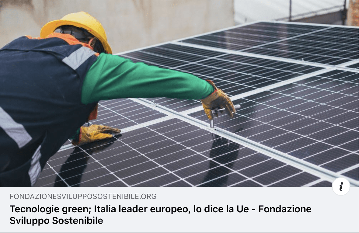 📌☀️⚡ La Fondazione per lo Sviluppo Sostenibile ci segnala che, in base al Rapporto 2024 sullo Stato dell’Unione dell’energia della Commissione Ue, l’Italia si conferma leader nelle tecnologie pulite, con un ruolo di spicco nel settore solare fotovoltaico 👉 INFO QUI