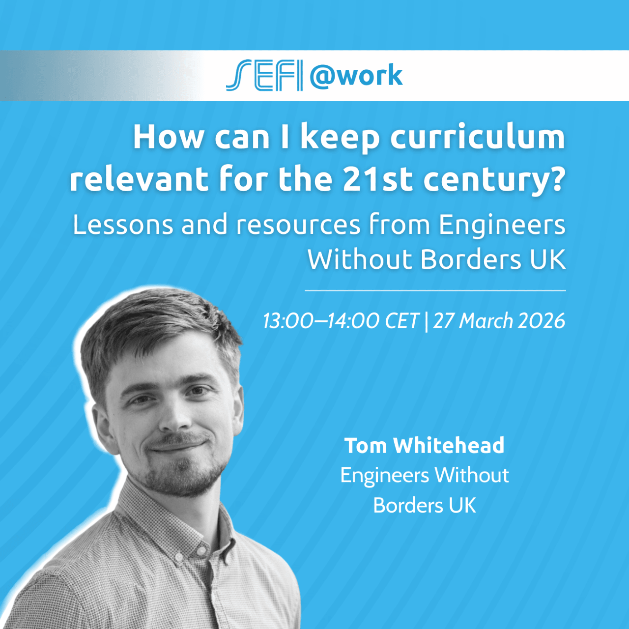Engineers Without Borders UK is leading efforts to put global responsibility at the heart of how engineering is taught and practiced, envisioning a future where the needs of all people are balanced with the needs of our planet. During this interactive hour, Engineers Without Borders UK will share their experience in navigating this space, through the Engineering for People Design Challenge and Reimagined Degree Map, to meaningfully empower educators to drive curriculum change and integrate global responsibility, sustainability, and ethics into engineering education. This SEFI@work session is organised by the SEFI Curriculum Development SIG. |