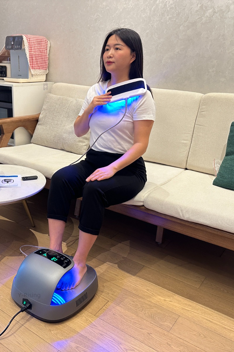 The belt produces internal heat, strengthens blood and lymph circulation, and promotes metabolism?, The rapid movement of fat molecules in human cells to achieve weight loss, abdominal efficacy, the use of low pressure more secure. The comprehensive light waves panel emits a range of visible light wavelength red light 633nm(±3% and blue light 415nm(±3%). According to a large number of clinical studies, red and blue light have anti-inflammatory, anti-swelling, sterilization, and wound healing effects. |